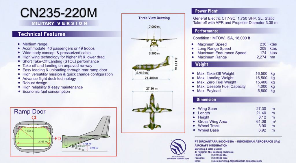 Pesawat terbang CN 235-220 merupakan generasi terbaru buatan PTDI yang memiliki beberapa keunggulan, yakni adanya penambahan berat maksimum yang dapat diangkut, sistem avionik yang lebih modern, fitur autopilot, hingga radar pendeteksi turbulensi.